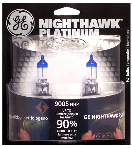 2-pack of GE Nighthawk 9004NHP/BP2 Platinum replacement bulbs. About General Electric *GE Nighthawk Platinum headlamps produce up to 90% more light on the road than standard halogen headlamps in areas illuminated with more than 15,000/40,000 candela (low beam/high beam). |